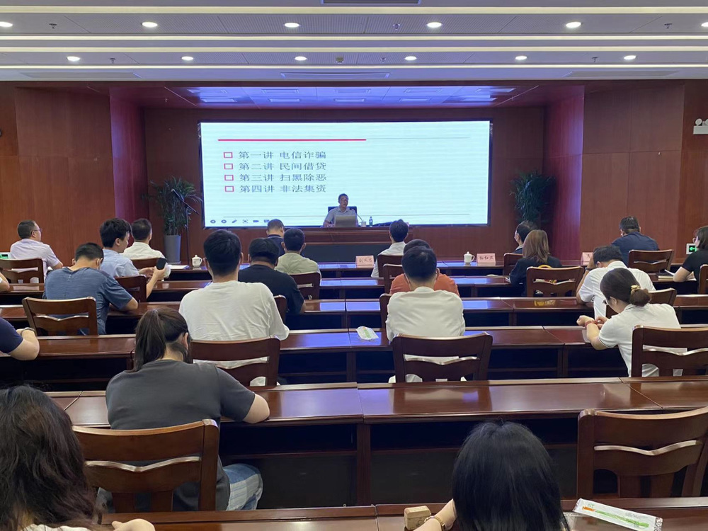 事務所錢強生律師以《增強法律意識,維護合法權益》為主題,從日常生活中我們容易遇到的“電信詐騙、惡意借貸、掃黑除惡、非法集資”等4個方面,通過案例解讀和分析,以案釋法、以法論事,向全體人員普及和宣傳了如何增強個人鑒別能力,保護自身合法權益的相關知識。