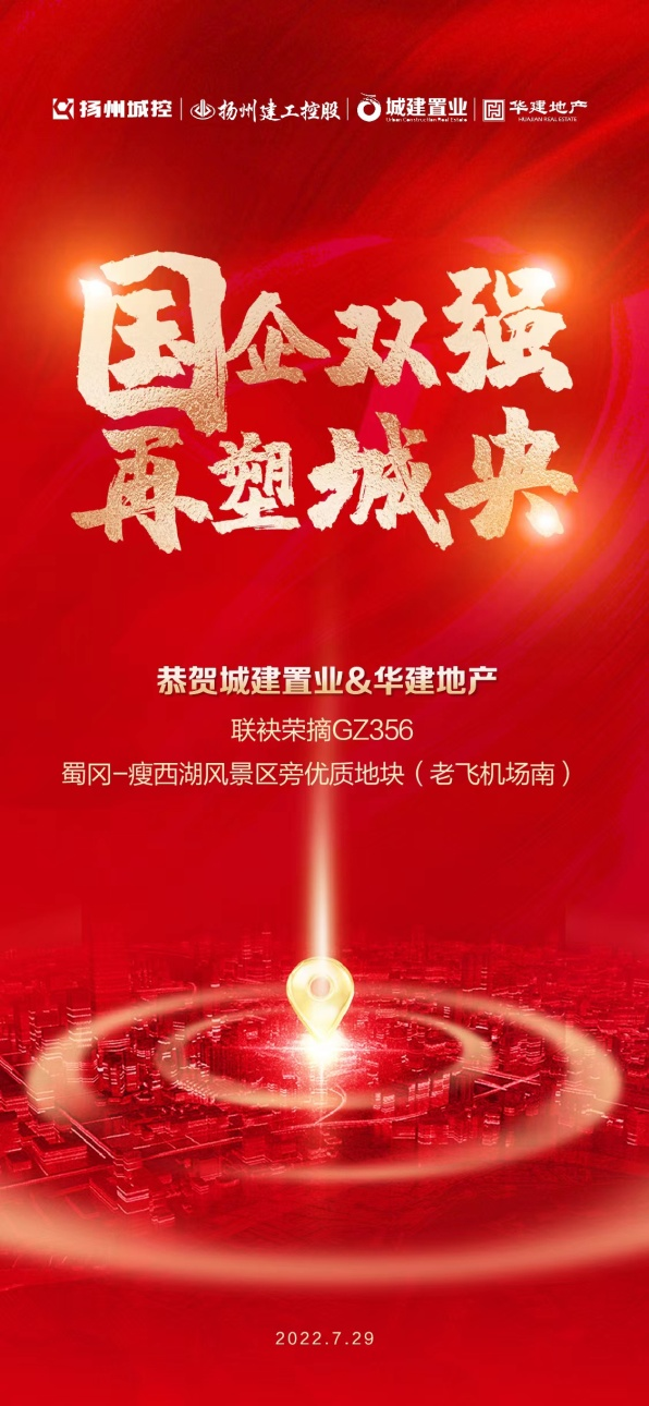 7月29日上午,揚州市第四次土拍結果出爐,在經過激烈的104筆競價后,西區GZ356地塊(原飛機場南)以樓面價10144元/㎡,成交價約8.9億元被城建置業公司聯合華建地產摘得。