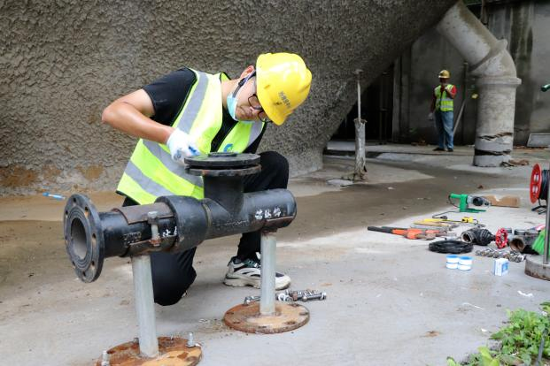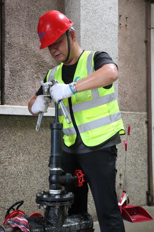 為體現水工實際操作技能,提高一線水工實戰能力,此次競賽以固定坑位模擬管道接水工程情境,要求選手在規定時間內,嚴格按照標準完成停水接攏并進行通水實驗。競賽現場,參賽選手手法嫻熟,爭分奪秒,有條不紊地實施著每一個步驟,測量、切割、安裝,一氣呵成。經過激烈角逐,最終孫憶獲得第一名,馬貞祥獲得第二名,陳根宏獲得第三名。