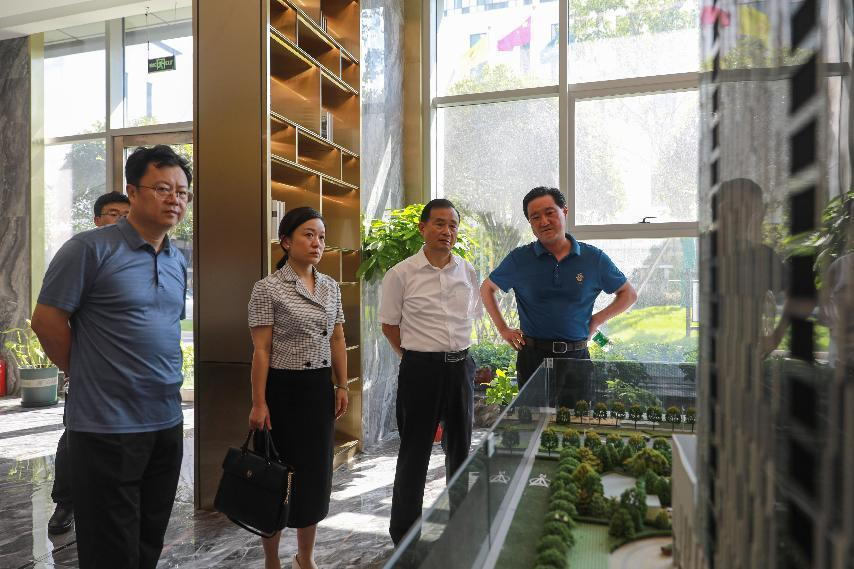 在星辰商務廣場展廳,葉善祥詳細了解了星辰商務廣場產業布局及發展規劃,對邗江城建發展公司高效率、高質態、高標準推進邗江建設工作表示贊揚。
