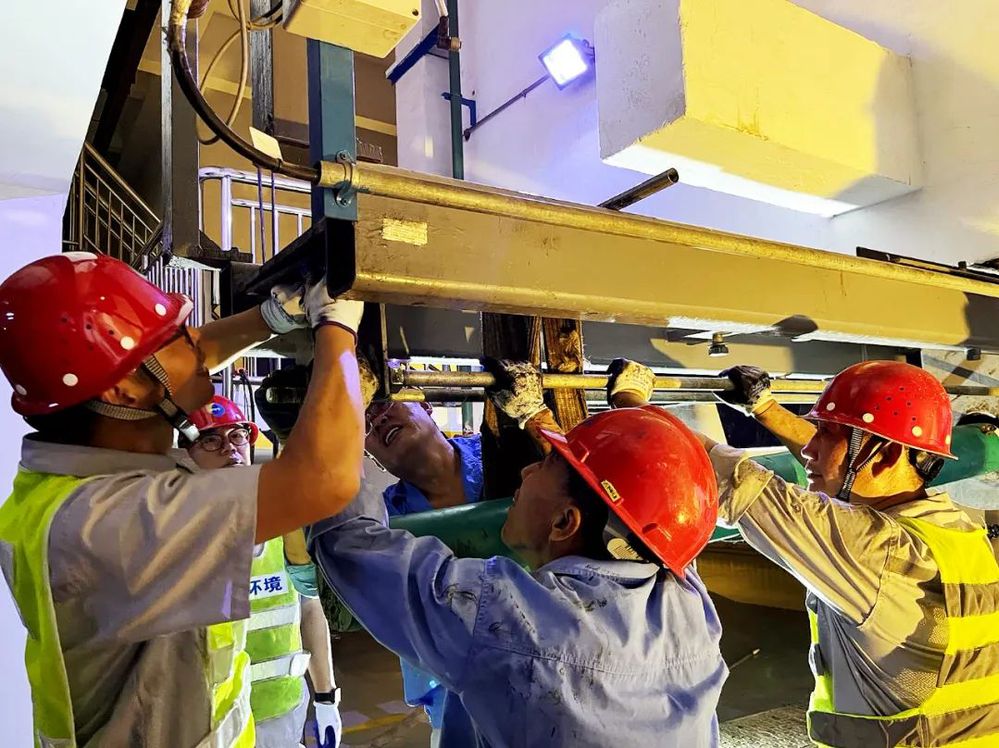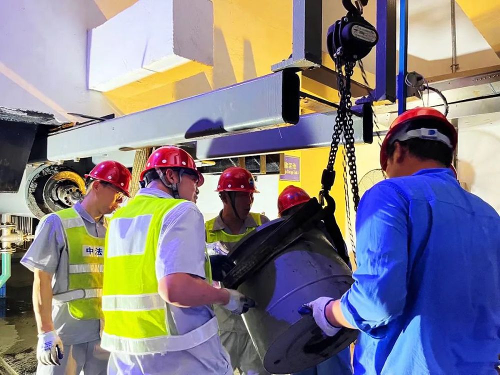 “蒸汽系統(tǒng)關(guān)閉,主體設(shè)備污泥走空,我們一會到……”8月22日晚19點18分,公司運營維護(hù)部接到當(dāng)班生產(chǎn)人員報修電話,經(jīng)初步判斷是污泥傳輸系統(tǒng)鬧起了“脾氣”。19點52分,公司運營維護(hù)部全體人員到達(dá)現(xiàn)場,經(jīng)現(xiàn)場確認(rèn)發(fā)現(xiàn)是污泥傳輸泵定子發(fā)生損壞。找到“癥結(jié)”后,他們迅速戴上安全帽,穿上安全背心,這一瞬間,他們化身為夜間的“逆行者”,與時間展開了一場賽跑,應(yīng)急搶修行動正式拉開帷幕。