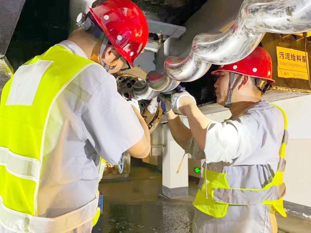 最終,經(jīng)過6名維護(hù)人員長達(dá)6個多小時的不懈奮戰(zhàn),污泥傳輸系統(tǒng)搶修工作順利完成,成功趕在當(dāng)天卸泥前恢復(fù)設(shè)備正常運行,守住了“碧水保衛(wèi)戰(zhàn)”的最后防線。