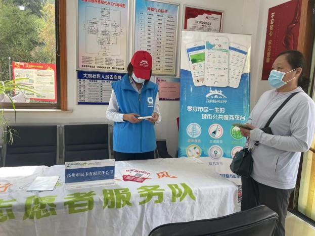 志愿者們充分利用市民卡服務資源,在活動現場設置便民流動服務點,為社區居民提供市民卡充值、年檢,免費更換卡套服務。除了提供“零距離”服務外,志愿者們還積極宣傳普及了可以足不出戶辦理業務的“我的揚州APP”,幫助現場群眾下載、安裝,并一對一指導,獲得群眾的一致好評。