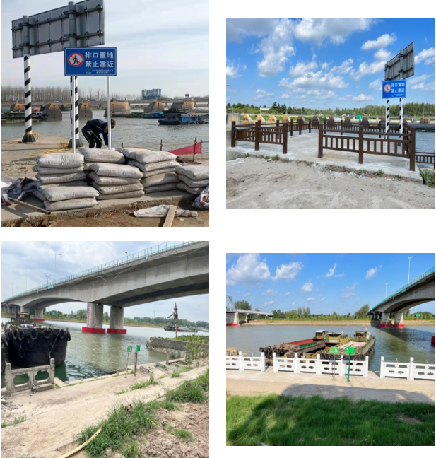 揚州市湯汪污水處理廠、六圩污水處理廠尾水排放口位于京杭大運河施橋閘附近,常常成為貨運船只停泊之地,排放口的安全防護設施與安全警示標識因此遭到損壞。