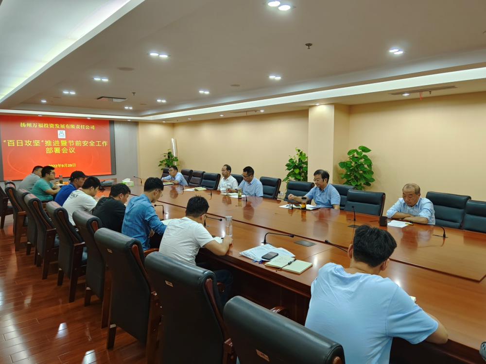 為扎實推進安全生產(chǎn)“百日攻堅”行動,切實做好國慶期間各項安全生產(chǎn)工作,以實際行動迎接黨的二十大勝利召開。9月29日下午,萬福公司組織召開安全生產(chǎn)“百日攻堅”暨節(jié)前安全工作部署推進會。公司領(lǐng)導(dǎo)班子及相關(guān)部門人員參加會議。
