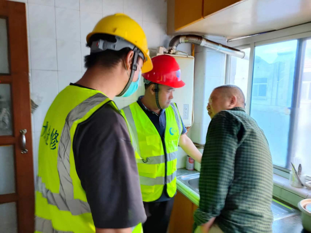 兩位老人行動不便、都是低收入人員。藍焰老兵與老人家親切交談,拉起了家常,仔細詢問老人的生活起居,了解老人日常生活的需求,宣傳普及燃氣安全使用常識,安檢戶內燃氣設施,免費將徐鴻林老人廚房間的到期燃氣膠管更換成燃氣不銹鋼波紋管,得到了老人的點贊。