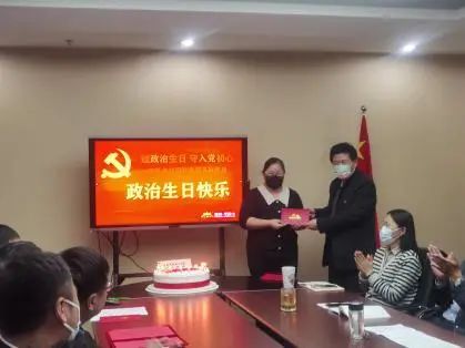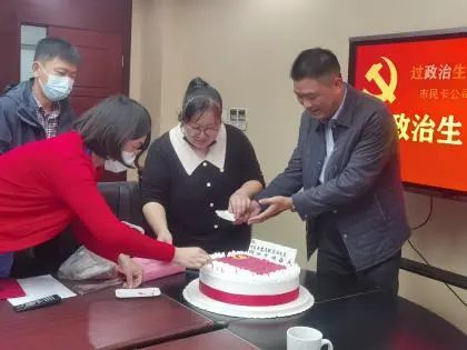 活動(dòng)中,黨員代表回顧了自己的入黨經(jīng)歷,分享了自己的心路歷程,并表示在今后的工作和生活中,將銘記黨員身份,牢記入黨誓詞,不忘初心,永葆本色,做一名合格黨員。支部書記代表市民卡黨支部為8名10歲以上黨齡的黨員送上“生日”祝福,頒發(fā)生日賀卡,并送上“生日”蛋糕。希望每名黨員都要以過政治生日為契機(jī),給自己加油、充電,補(bǔ)精神之“鈣”,堅(jiān)定理想信念,增強(qiáng)政治定力,做一名在工作和學(xué)習(xí)中充分發(fā)揮先鋒模范作用的合格共產(chǎn)黨員。