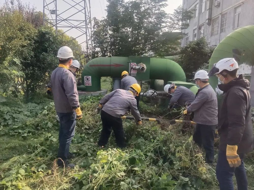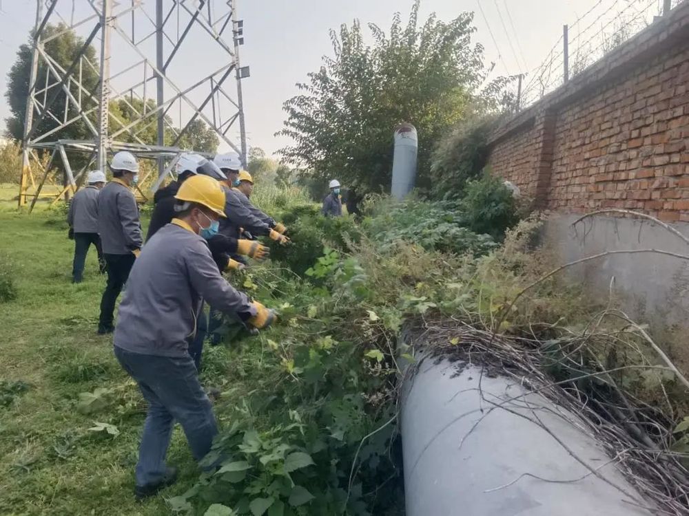 西銀溝蒸汽主管道為西南線末端,也為道路盲區(qū),周邊雜樹雜草已成為影響管網安全運行和環(huán)境整潔的極大隱患。志愿者或徒手或用工具,對管道周圍的雜草、樹枝進行修剪,所有雜物進行全面清除。從中午一直到天黑,在這樣的深秋時節(jié),一個個汗流浹背,熱氣騰騰,用辛苦的勞動換來周邊干凈整潔的環(huán)境,綠油油的管網重新展露身姿,該區(qū)環(huán)境也煥然一新。