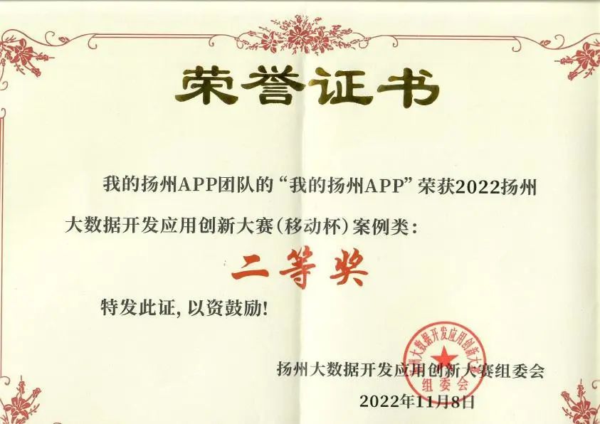 大賽以“數聚好地方、賦能新發展”為主題,共設置案例類、創意類兩大賽道,聚焦營商環境等六大方面。其中,“我的揚州APP”獲獎的案例類共有72支隊伍報名參賽?!拔业膿P州APP”著重整合揚州市已有信息化建設成果和相關資源,解決了因各應用單獨開發、單獨部署、單獨運營所造成的市民使用不夠便捷的問題,最終從72支隊伍脫穎而出,榮獲二等獎。目前我的揚州APP已經整合全市35個政府部門(單位)的130余項服務,逐步成為揚州城市掌廳,取得良好成效,對數據應用方向起到重要引領作用。