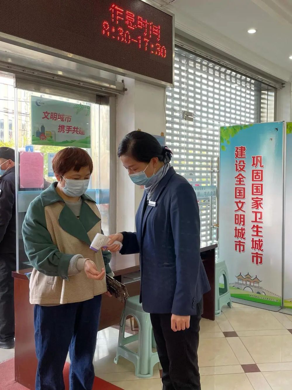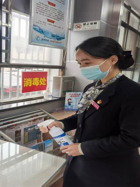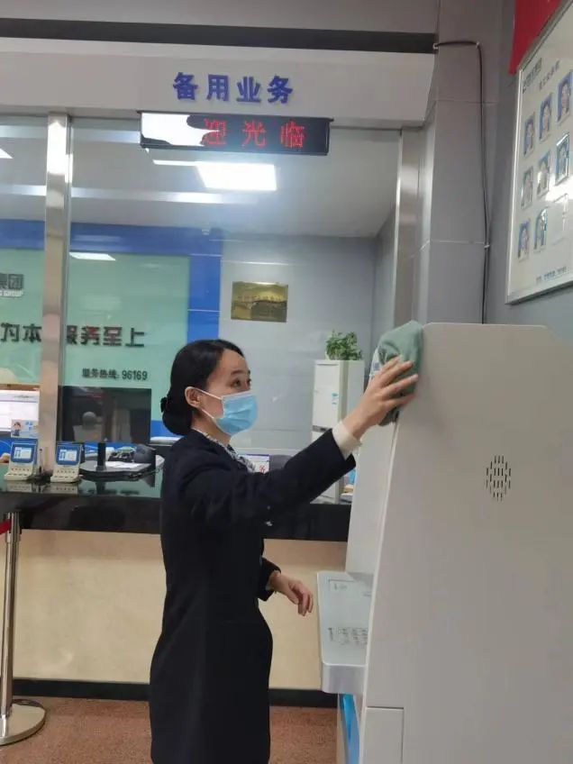 東花園供水營業所服務主管管露每天早早來到崗位,本著對每位用戶負責的態度,她每天進行消毒、清潔工作,桌臺、椅子、自助機……細心的她不落下任何一個細節,偌大的營業大廳在她的忙碌下井井有條。管露表示,每個月中下旬,來大廳繳費的客流量大,尤其以老年用戶群體居多,既要加強疫情防控,又要提供周到服務,為用戶提供健康、整潔、舒適的大廳環境,是每一名水務人應盡的職責。