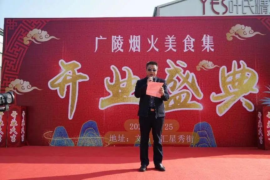 2022年11月25日,文昌百匯街區懷舊主題“廣陵煙火美食集”正式開業。資產公司主要負責人參加了開業活動并作開業致辭。