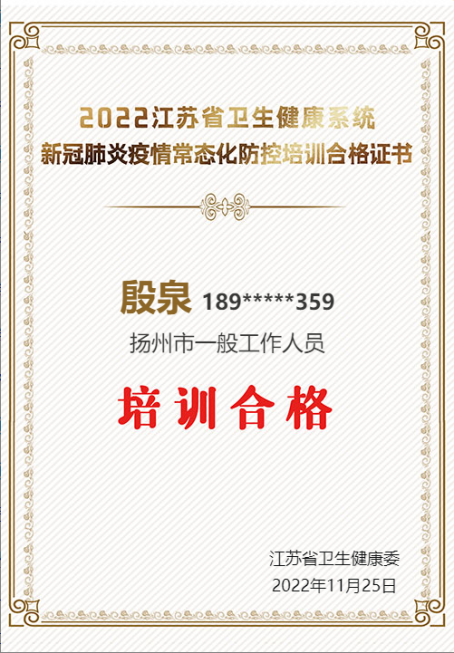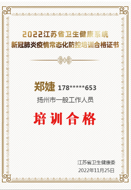 培訓會上,與會人員共同觀看了“江蘇省常態化疫情防控培訓平臺”上對《江蘇省優化新冠肺炎疫情防控措施科學精準做好防控工作實施方案》的解讀,會議強調了對疫情防控期間辦公場地和營業廳的管理要求,從人員管理、門禁管理、物資和后勤保障工作、核酸檢測和中高風險區域排查上報管理以及通風、消毒等方面進行了解讀,希望大家高度重視此次培訓,提高對近期疫情防控工作的重要認識。集中學習后,全體職工利用休息時間登錄“江蘇省常態化疫情防控平臺”進行學習,均已獲得培訓合格證書。