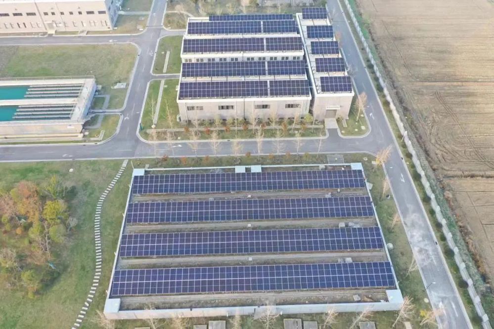 該項目位于高郵湖西水廠,項目總容量584.1KWp,共投資約200萬元,主要利用高郵湖西水廠現有的清水池池面、濾池屋頂及地面等閑置空間建設分布式光伏電站。