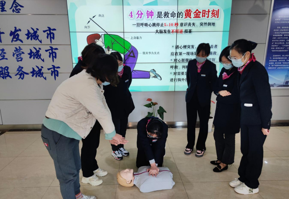 為進一步提升營業廳窗口服務人員在日常工作中的急救水平、強化應對各類突發事件現場急救實操技能,近日市民卡公司邀請揚州市急救中心的專業急救工作者對一線窗口的客服人員進行了一次“現場急救、善后處置”專項急救培訓。