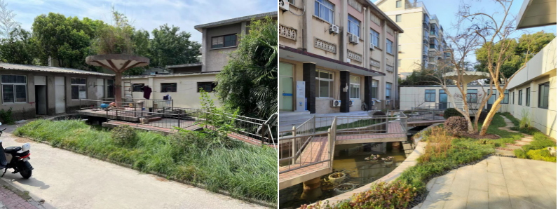 職工們不但自主設計方案,還事事親力親為,經過一個月的努力,完成了老舊池塘淤泥清理,布置了睡蓮、荷花、鳶尾等水生植物栽種,布景方向以大塘麥冬草為主、石材板料以汀步的形式游走其中,錯落有致,水池兩邊栽種了紅楓、黃桃、烏桕,輔以紅花繼木球、枸骨球等突出層次感,庭院迸發出新的活力。