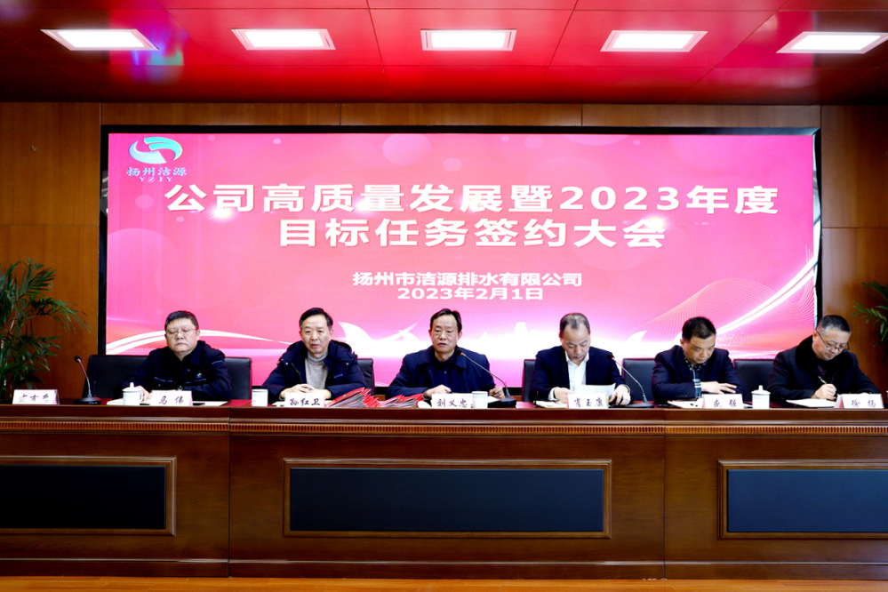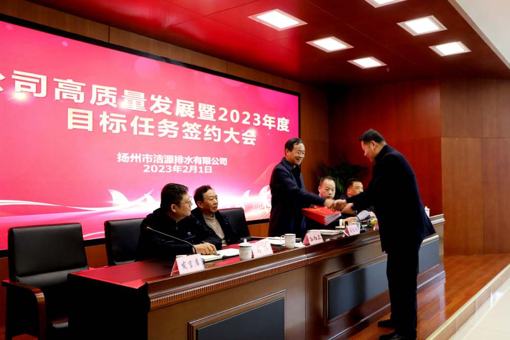 2月1日下午,潔源排水公司組織召開高質量發展暨2023年度目標任務簽約大會,公司領導班子全體成員、全體中層干部及職工代表參加會議。