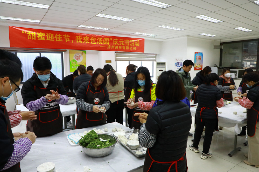 2月3日,農歷正月十三,在揚州一直有著“上燈圓子落燈面”的習俗,供熱公司工會早早就開始準備元宵節的“湯圓宴”。活動現場,大家圍攏在桌前,你和面,我包餡,邊拉家常邊包湯圓,笑語不斷。揉、團、捏、搓,手指翻飛間,一雙雙靈巧的手把濃濃的元宵情都包進了圓鼓鼓的湯圓里,一個個白白糯糯的湯圓就擺滿了桌。