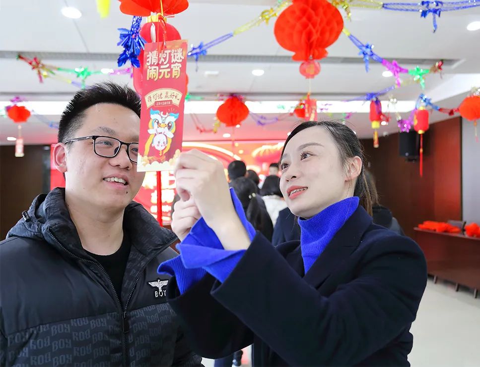 本次猜燈謎活動內容豐富,且兼具知識性與趣味性,包含成語故事、傳統民俗、字謎等。面對一道道燈謎,大家積極響應,踴躍參與,時而駐足沉思、時而輕聲討論、時而喜笑顏開,氣氛熱烈歡騰。活動最后,公司為全體職工送上了花燈。