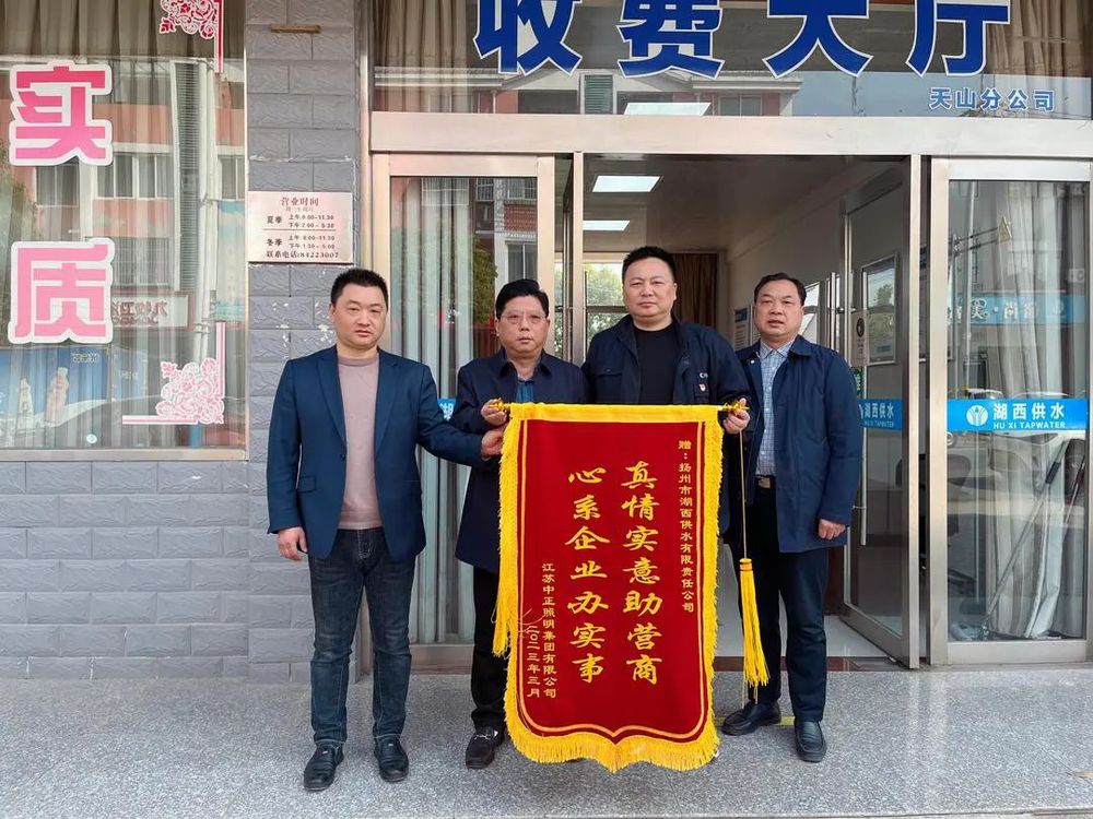 真情實(shí)意助營(yíng)商,心系企業(yè)辦實(shí)事。3月15日是消費(fèi)者權(quán)益日,這天上午,江蘇中正照明集團(tuán)有限公司和大橋(江蘇)焊材科技有限公司分別向長(zhǎng)江水務(wù)湖西供水公司送來(lái)錦旗,對(duì)湖西公司優(yōu)化營(yíng)商環(huán)境,支持企業(yè)發(fā)展表示感謝。