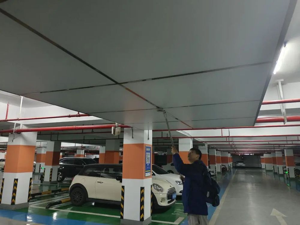 夜間9點,消防測試正式開始。工作人員在地下停車場啟動某一煙感報警,同時按下手動報警按鈕,報警主機聯動反饋觸發,主電源自動切換,應急照明點亮,同時音響廣播開始播報,防火卷簾門自動降落,防火門自動關閉,消火栓系統、自動噴水系統都已啟動,每一個測試過程環環相扣,火災預警、聯動系統正常。聯動測試后,各設備逐一復位,本次測試于夜間10點半左右圓滿結束。