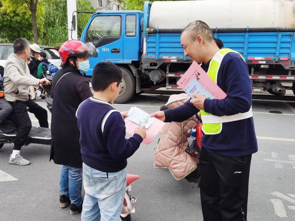 活動中,“藍焰同心”志愿結合學校周邊的道路交通環境,向散學的學生發放宣傳資料,做好交通安全知識宣傳,同時引導學生們以“小手牽大手”的互動方式,告知父母及親戚朋友共同遵守道路交通法律法規,守法知禮,安全出行。