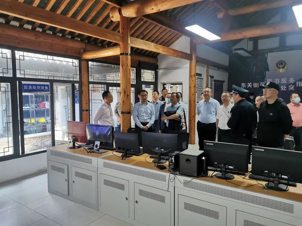 與會人員實地觀摩了東關街消防執勤點、街區綜合應急指揮中心、國家級文物保護單位逸圃,名城公司分管負責人匯報了街區安全生產管理工作。