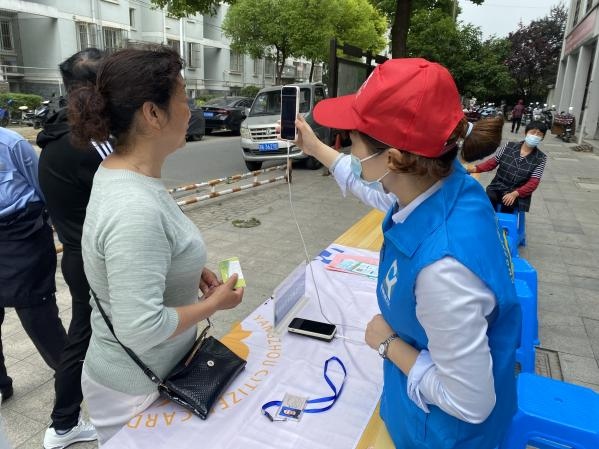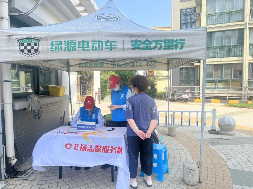 活動一開始,志愿者們穿上統一的藍色志愿馬甲,把準備好的宣傳展板、橫幅、宣傳折頁、扇子等有序擺放整齊,營造濃厚的活動氛圍。志愿服務走進的社區均為距離營業網點較遠,人員密集,老年人居多的區域,活動很快吸引了眾多群眾的圍觀。志愿者們將服務窗口“搬”至居民家門口,為其提供市民卡充值、老年卡年審、更換卡套等服務。他們還一邊向居民群眾發放各類宣傳彩頁,一邊用通俗易懂的語言向他們宣傳市民卡的種類與用途,講解“我的揚州APP”的功能和便捷性,征詢市民對市民卡的建議與意見,不斷提高廣大居民群眾對市民卡和“我的揚州APP”的知曉率,參與率和滿意度。