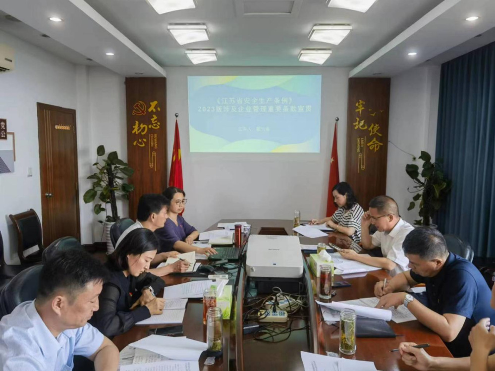 為扎實開展好2023年“安全生產(chǎn)月”活動,營造學(xué)法、用法、守法的良好氛圍,進一步推動安全生產(chǎn)工作走深走實,6月9日下午,集團黨委委員、名城公司總經(jīng)理戴興春專題宣講新修訂的《江蘇省安全生產(chǎn)條例》,公司安全生產(chǎn)領(lǐng)導(dǎo)小組全體成員參加。