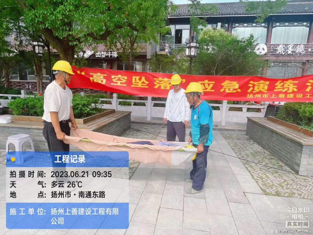 同時,上善公司組織施工單位在康山文化園施工現場開展“高空墜落”應急救援演練活動。演練模擬高空作業中,作業人員進行登高作業,突發墜落的情況。項目現場負責人迅速組織施工單位人員施救,同時向公司及有關部門報告事故發生時間、地點和傷亡情況。救護人員趕到現場后,作業人員積極配合搶救傷員。演練過程中,各環節緊扣,現場人員反應迅速、指令順暢、責任明確、組織有序,達到了良好了演練效果。