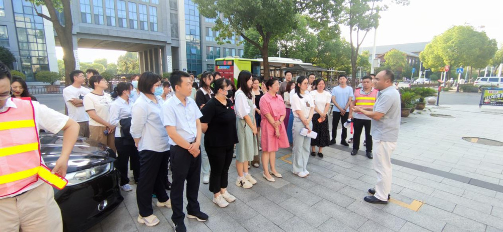 疏散人員在辦公樓前集合,經各部門清點確定人員全部撤離后,演習結束。
