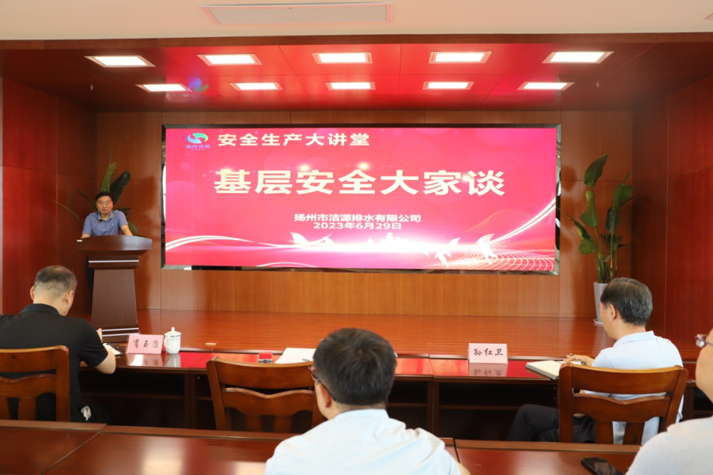 為切實(shí)增強(qiáng)安全生產(chǎn)綜合素質(zhì),將安全生產(chǎn)月系列活動(dòng)引向深入,6月29日上午,潔源排水公司組織開(kāi)展安全生產(chǎn)大講堂暨基層安全大家談活動(dòng),公司領(lǐng)導(dǎo)班子成員、各部門(mén)負(fù)責(zé)人、生產(chǎn)運(yùn)行班組長(zhǎng)及部分職工參加活動(dòng)。