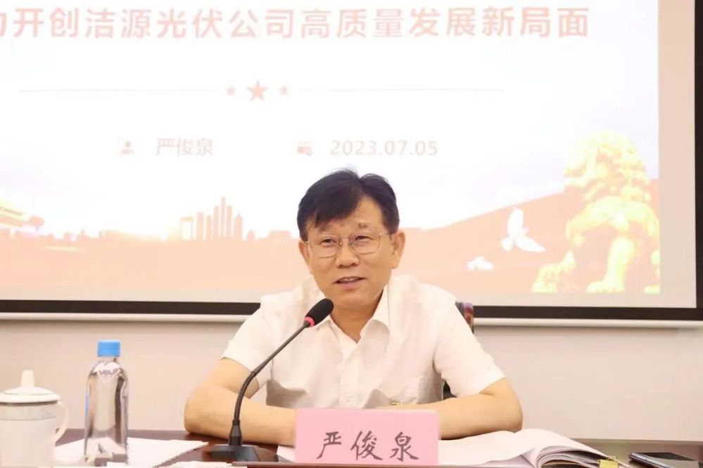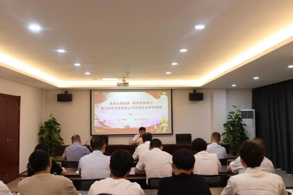 會上,嚴(yán)俊泉以《發(fā)揚斗爭精神、乘勢勇毅前行,奮力開創(chuàng)潔源光伏公司高質(zhì)量發(fā)展新局面》為題,從“深刻認(rèn)識斗爭精神的豐富內(nèi)涵”“準(zhǔn)確把握新時代斗爭精神的特點要求”“堅持發(fā)揚斗爭精神的路徑方法”三個方面闡述了斗爭精神的時代特征和實踐要求,分析了“雙碳”目標(biāo)背景下新能源發(fā)電產(chǎn)業(yè)的斗爭形勢,并對潔源光伏公司下一步工作提出了具體要求。