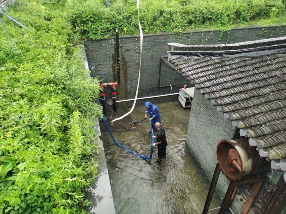 2023年7月6日14:15左右,揚(yáng)州市突遭強(qiáng)降雨襲擊,康山文化園立刻加大對(duì)街區(qū)的安全巡視。由于特殊的地理位置,街區(qū)3號(hào)樓下沉通道很快出現(xiàn)大面積積水,集水坑抽水泵已經(jīng)不能滿足排水需求,負(fù)一層商戶隨時(shí)面臨室內(nèi)淹水風(fēng)險(xiǎn)。