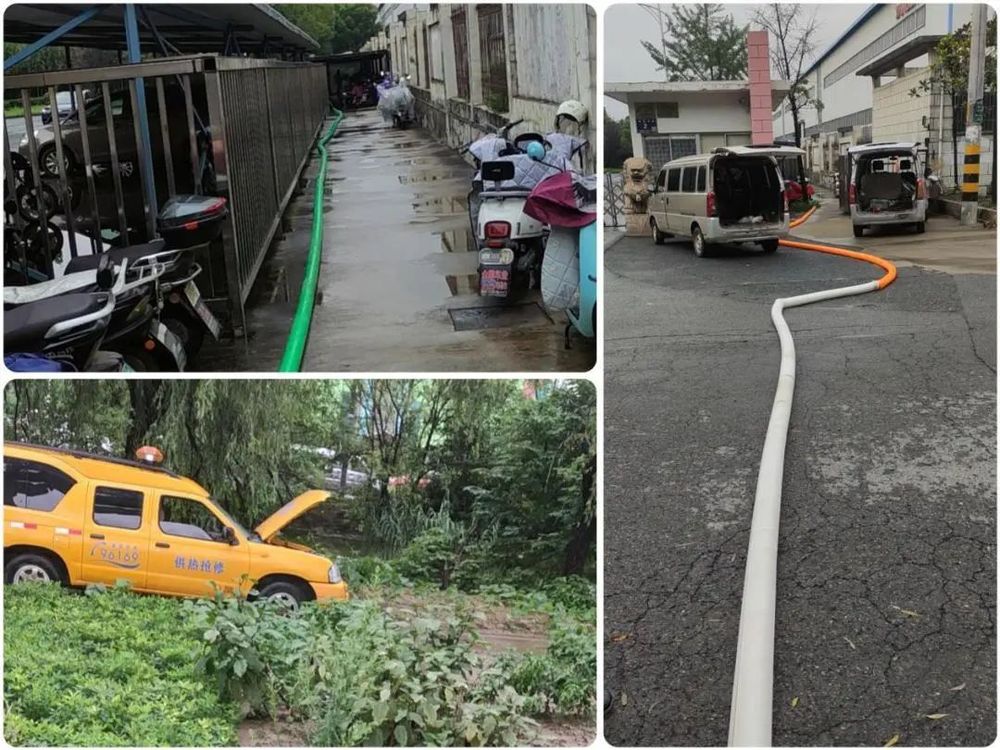 雨情就是號角,汛情就是命令,情情關乎民生?;萃C械廠內熱用戶聯博藥業部分管道及科教園線管道被淹1/3,存在極大安全隱患。了解情況后,搶修人員第一時間趕到現場,確定抽水與排水位置,車載直流泵“龍吸水”馬力全開加速排水,通過數個小時的努力將積水全部排盡,恢復了原來的樣子。同時,供熱公司已通知全部重要熱用戶做好地下機房和用熱設備防水排澇措施。