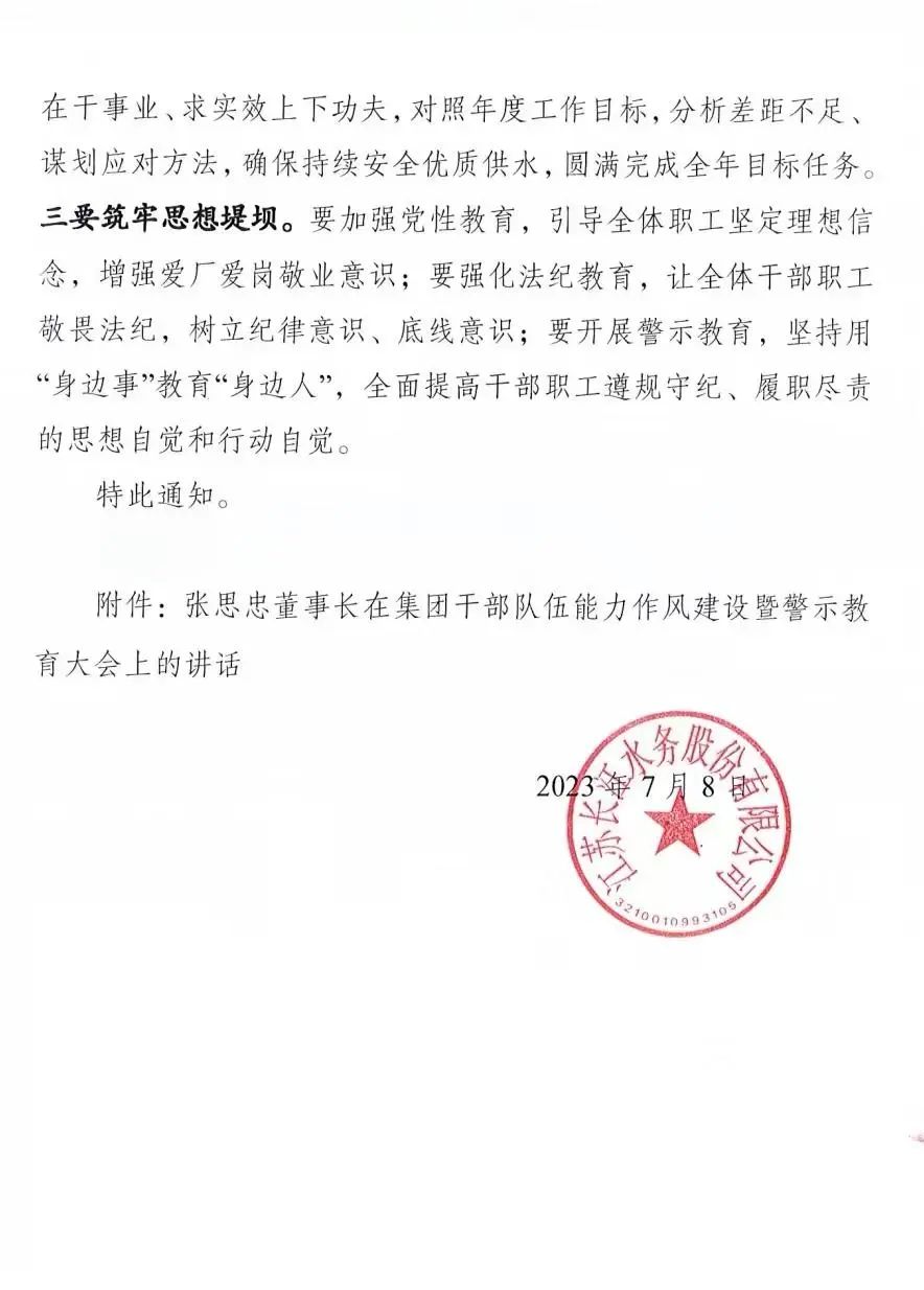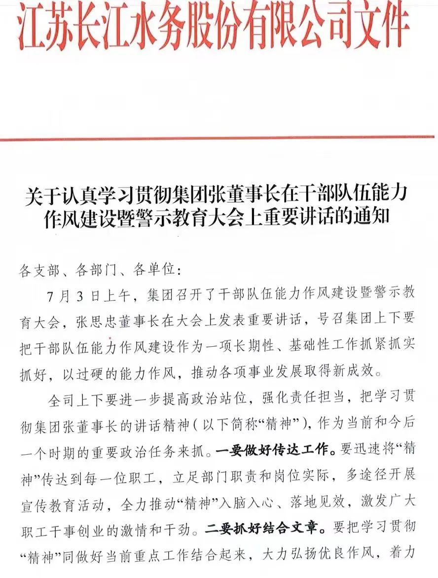 城控集團召開干部隊伍能力作風建設暨警示教育大會后,長江水務迅速傳達學習貫徹會議精神和張思忠董事長講話精神,將會議內容和講話精神與工作實際結合,以學促干,以干踐學,以安全優質保供為己任,保障全市夏季高峰供水。全體長江水務人大干火熱七月,力爭交出優異成績單,為完成三季度乃至全年工作打下堅實基礎。