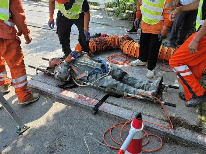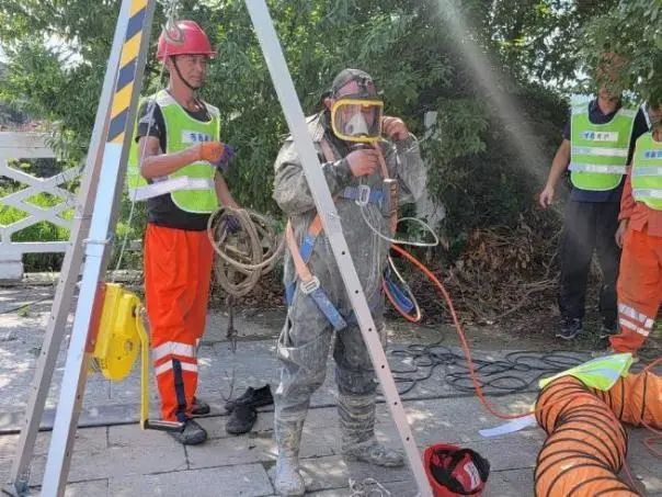演練模擬了施工人員在污水井內(nèi)維修工作過(guò)程中突發(fā)頭暈不適,事故發(fā)生后,現(xiàn)場(chǎng)施工負(fù)責(zé)人匯報(bào)項(xiàng)目負(fù)責(zé)人,并立即啟動(dòng)《有限空間作業(yè)事故應(yīng)急預(yù)案》。