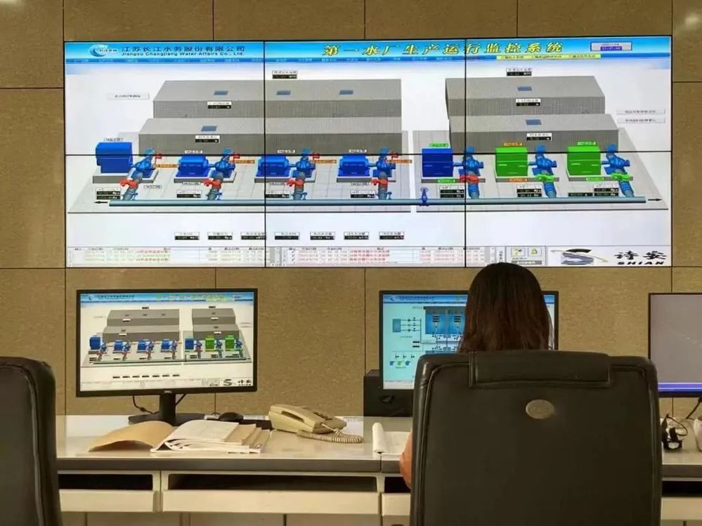 第一水廠中控室值班員在監測機組數據