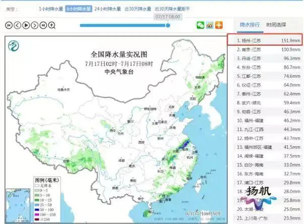 7月17日5時48分,揚州市氣象臺升級發布暴雨橙色預警,7月17日6時起提升揚州城市防洪應急響應等級至Ⅲ級。