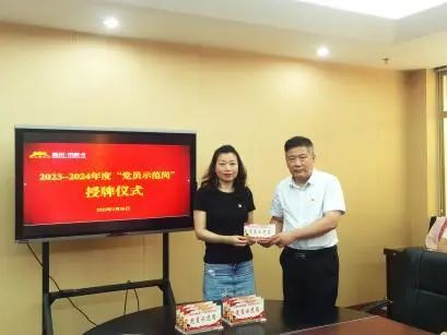 公司黨支部書記就上半年黨建工作進行了總結,并對下半年黨建工作進行部署安排,宣讀了“黨員示范崗”人員名單,為7名“黨員示范崗”人員一一授牌,“黨員示范崗”的承諾不僅是一份信任和榮光,也是一種鞭策和鼓勵,更是一種責任和使命。期望全體黨員牢記使命,創先爭優,擦亮身份,勇于擔當,成為市民卡公司發展的中堅力量。