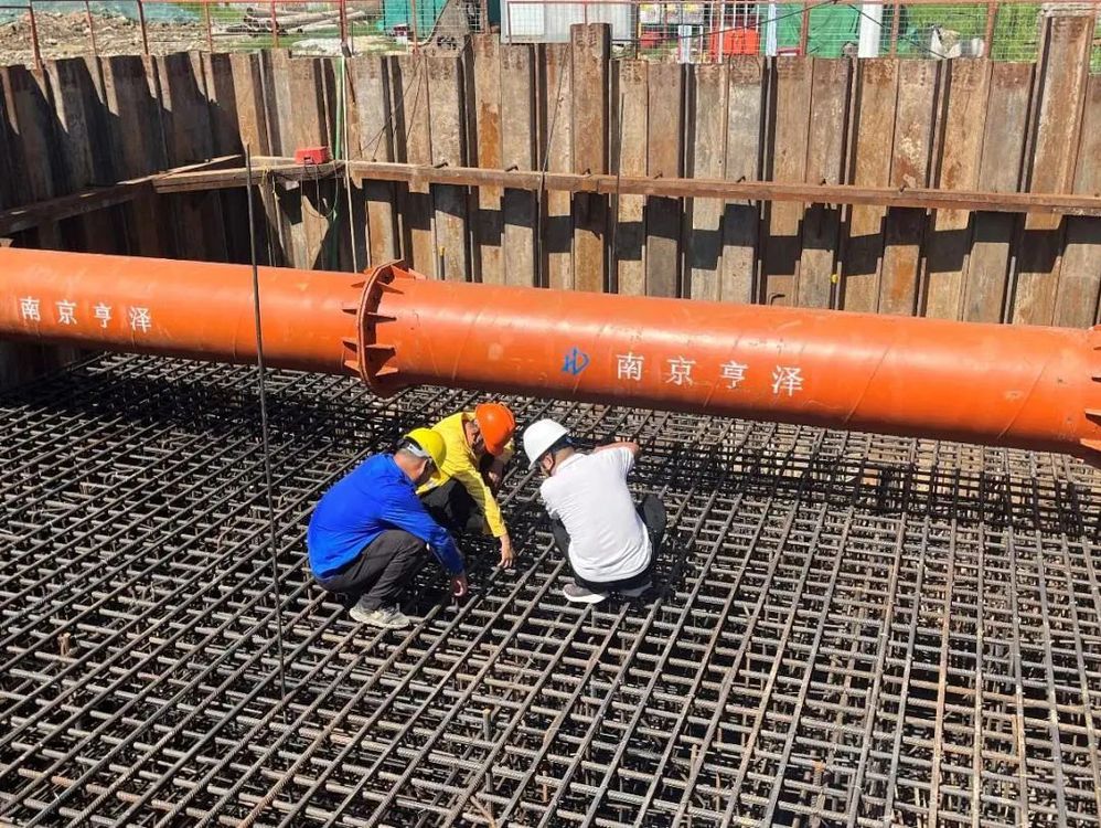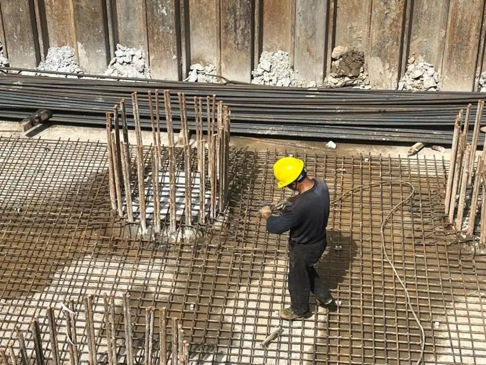 現場管理人員正在檢查鋼筋綁扎情況