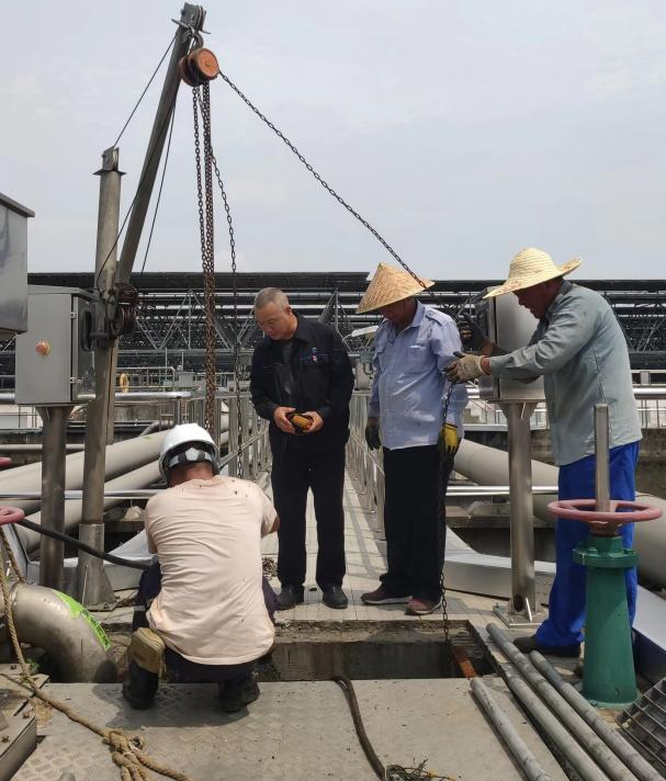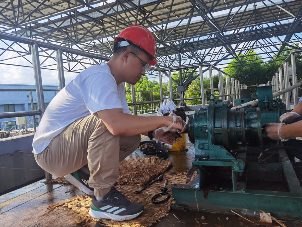 “設備正常運行比什么都強!”這是現(xiàn)場維修人員常說的一句話。自進入雨季以來,汛期水量驟升,且在高溫環(huán)境下,對設備穩(wěn)定運行產(chǎn)生沖擊。為保證設備的良好運行質(zhì)態(tài),廠區(qū)設備維保人員嚴格按照公司“以養(yǎng)代修”設備保養(yǎng)計劃,不折不扣的完成廠區(qū)污水處理設備的保養(yǎng)檢修工作。