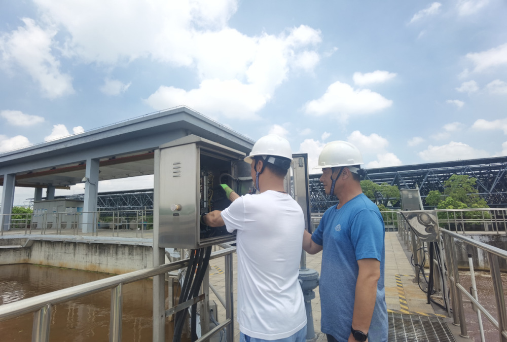 “即便是只站在太陽底下不動,不到兩分鐘也會出一身汗……”高密沉淀池上,搶修的維修員額頭早已掛滿細密的汗珠,尚未來得及擦拭,汗珠就已順著帽檐滾落下來。另一邊生物池上,定期維保設備的工作人員頂著火辣辣的烈日,往復折返確認數(shù)據(jù)是否接收成功,直呼呼地喘氣,不停擦拭著臉上汗水。在此情況下,他們毅然選擇堅守,為穩(wěn)定生產(chǎn)貢獻力量。
