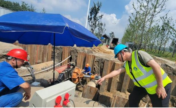 搶維修中心“水網先鋒隊”是一支干勁十足的隊伍,他們是城市安全供水“生命線”的守護者。由于是應急部門,電話就是號角,險情就是命令,隱患需要排查,故障需要搶修。他們24小時堅守、奮戰在崗位一線,接報即動,一次次出現在故障現場,一次次接受高溫的錘煉,頭頂烈日,腳踏熱浪,伴隨著機泵的轟鳴和額角止不住的汗水,他們用堅守與堅持為城市供水設備平穩運行筑起一道堅實的“護欄”。