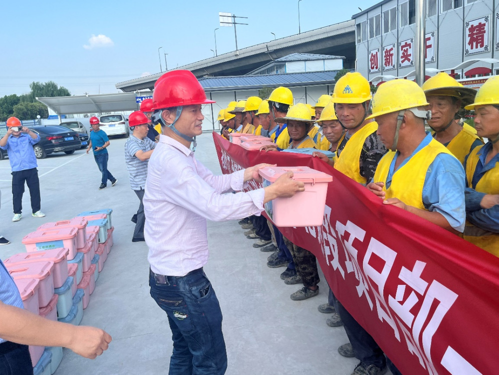 活動現場,市總工會范華一行為高溫下堅守崗位的工人師傅道辛苦、說感謝、送關懷,并遞上高溫清涼慰問品。范華囑托運河路北延項目部一定要抓好施工一線人員的防暑降溫和健康安全工作,特別是當前面臨著戰高溫、防汛防臺等形勢。同時,他激勵項目部全體人員要繼續保持“精益卓越、拼搏奉獻”的大愛精神,為揚州的建設和人民美好生活貢獻力量。