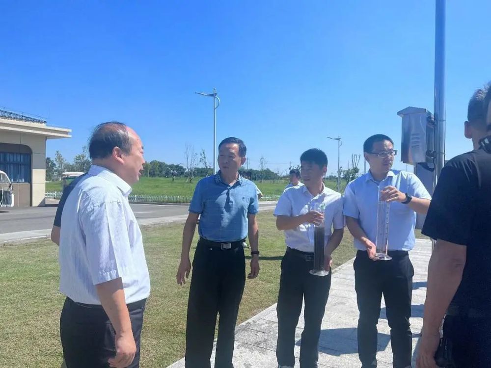 隨后,陳佳宏一行前往污水處理現場,實地查看了北山污水處理廠生產運行設施,并在進出水口現場采取出水樣進行處理前后對比,當看到渾濁的進水變化為清澈的出水,鮮明的水質改善效果讓調研組一行對北山廠污水處理成效表示高度肯定。