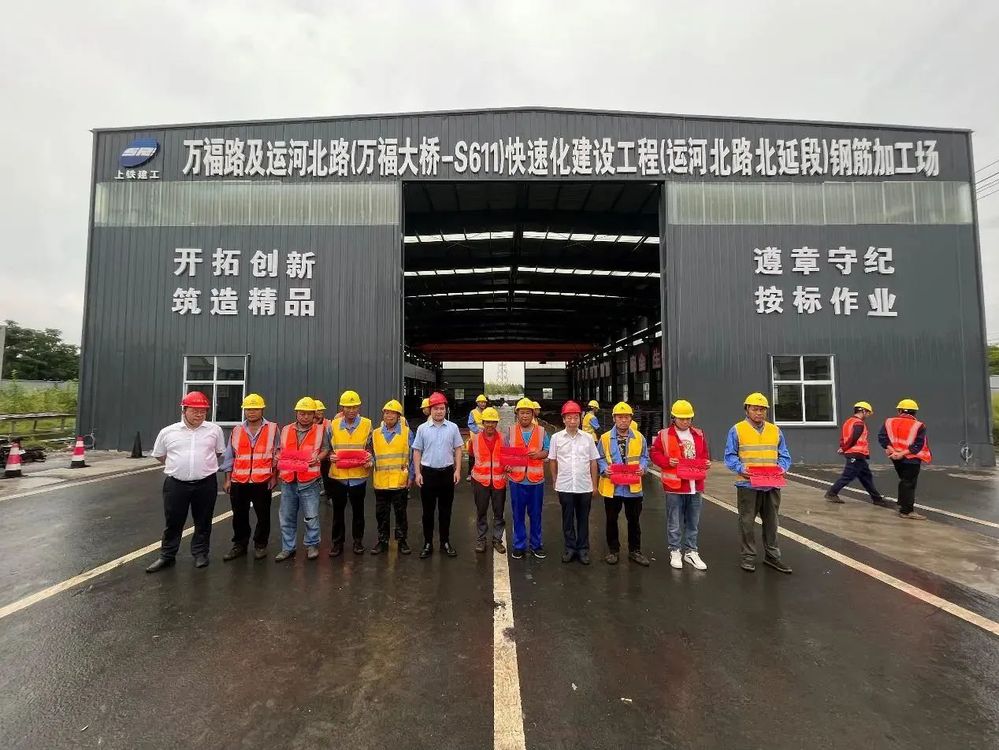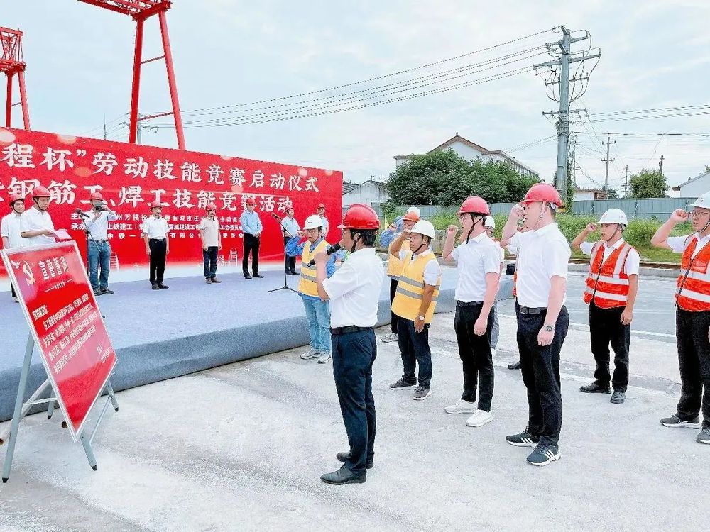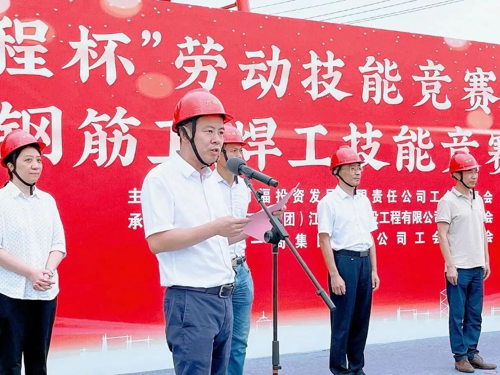 為充分調動市級重點工程壁虎河大橋及運河路北延項目參建單位及廣大員工工作積極性,不斷激發建設者勞動熱情,保證項目在安全的前提下快速推進,2023年9月15日,由萬福公司主辦的“新里程杯”勞動技能競賽啟動儀式暨鋼筋工、焊工技能競賽活動在運河路北延工程施工現場舉行。揚州市總工會副主席伍瑞慶,揚州市住建局黨委委員、副局長肖波,揚州市城控集團黨委副書記徐飛,黨委委員、副總經理季紅軍,揚州市總工會建設產業工會主任范華,城控集團直屬聯合基層工會主席徐紫月,萬福公司領導班子成員,各參建單位相關負責人、工會主席、項目管理人員代表及工人代表參加了活動。