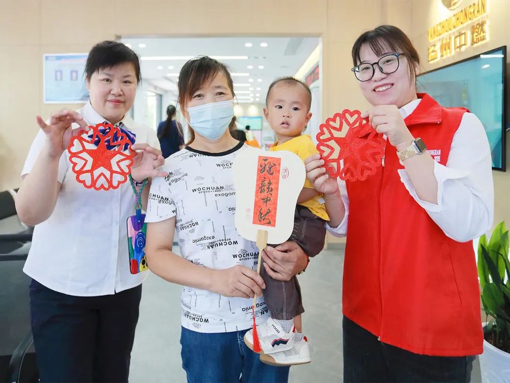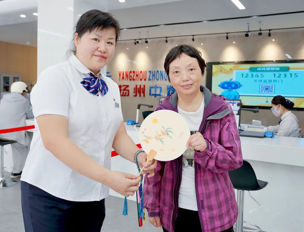 丹桂飄香、“柿柿”如意、“榴榴”大順……應時應節應景的國畫作品在小小團扇上妙趣橫生,贏得了前來辦理業務市民的嘖嘖稱贊,爭相領取。當天累計送出書畫團扇近100把。