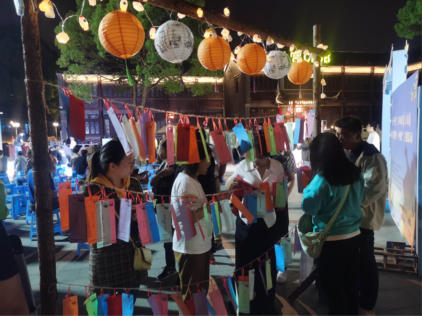活動通過“賞中秋-多巴胺月亮”“嬉中秋-賞月園游會”“頌中秋-拜月大典”“品中秋-中秋雅集”四部分遞進開展,居民朋友在現場參與了中秋燈謎會、投壺,花燈手作、做月餅、夜兔燈籠等活動,在古風賞月游園活動中體驗中秋民俗,感受中華傳統文化的魅力,共享中秋團圓喜樂之美。