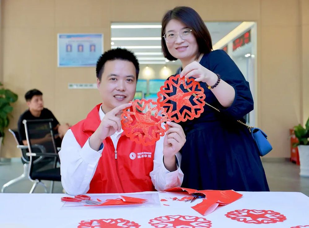 歡歡喜喜迎國慶。折疊紅紙、設計圖案、剪裁紙張,一幅幅“中國心中國星”剪紙作品呈現在大家眼前。活動現場氣氛熱烈,不少提前得到消息的市民更是遠道趕來,現場學起了剪紙,來了一個DIY。通過這樣的活動激發市民心里共鳴,營造愛國主義氛圍,共同祝愿偉大祖國繁榮昌盛。