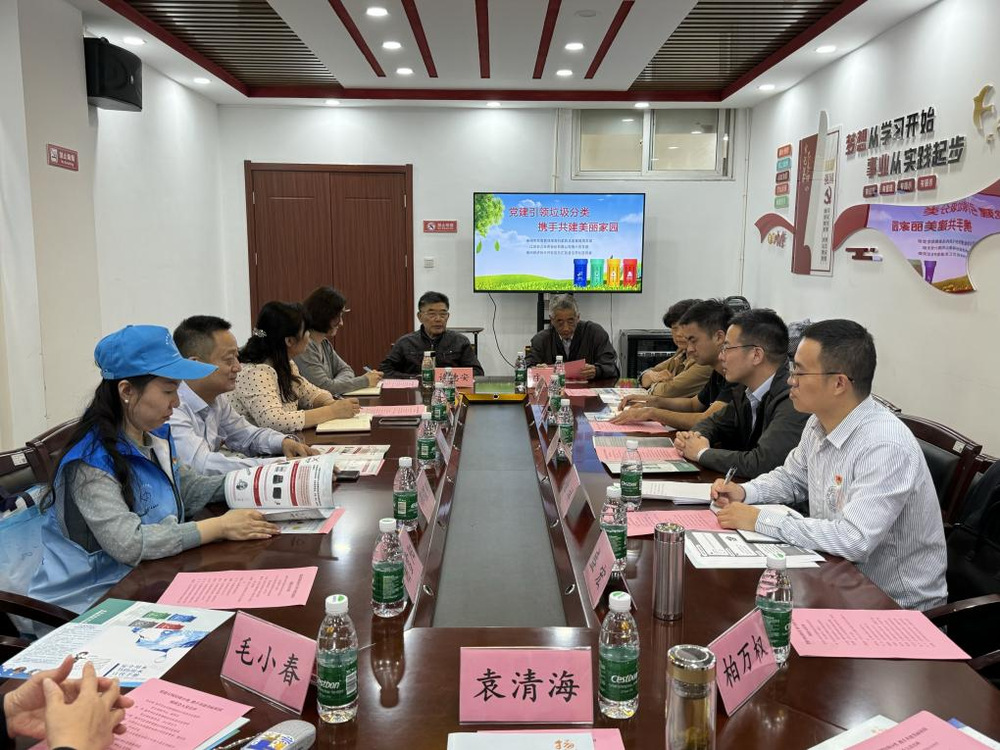 在寶帶社區黨群服務中心,市應急執法局黨支部、長江水務第六黨支部、寶帶社區黨委負責同志和黨員群眾代表進行座談交流,對寶帶社區內垃圾分類的現狀進行分析研判,發現推廣垃圾分類主要存在兩點問題:一是投放站的擺放位置難找;二是居民的積極性不高。根據這些問題,各單位人員積極商討解決方案,一致認為在了解居民訴求的情況下,需針對社區居民進行多方宣傳,做好居民思想工作,可采用發放禮品、垃圾分類積分換購等多種舉措調動居民積極性;針對小區物業(運營方),需重點講解站點設備的使用方法、使用時間等。
